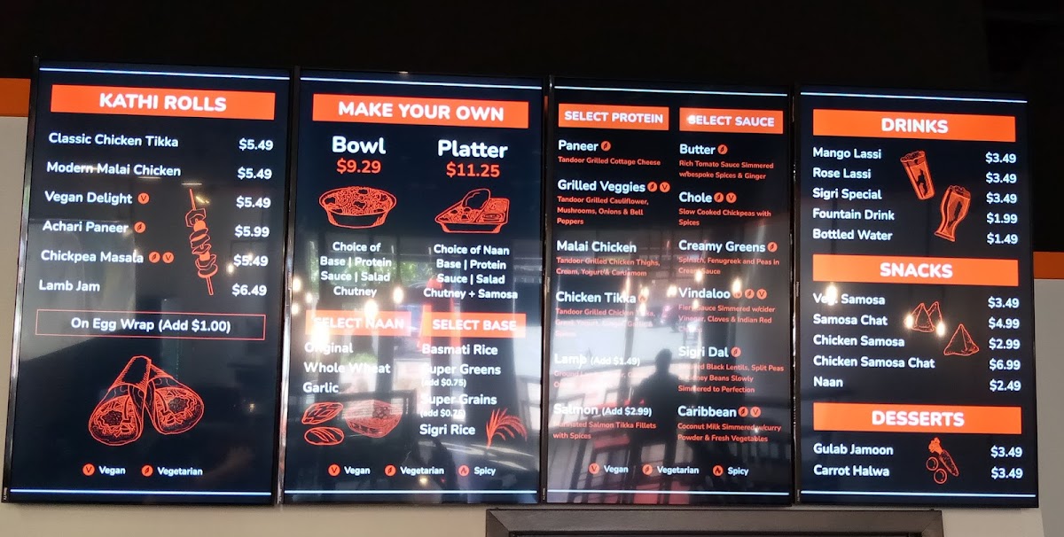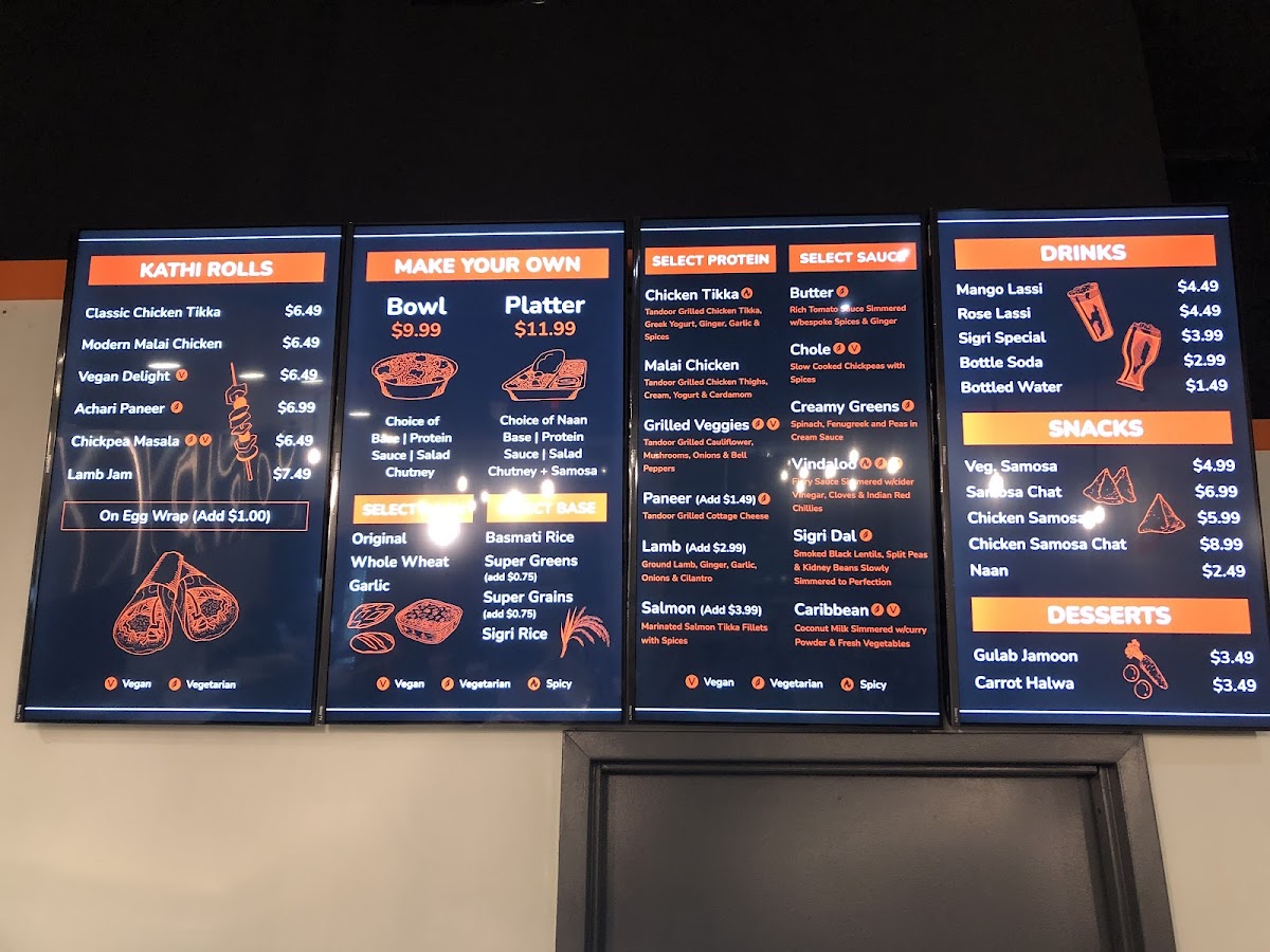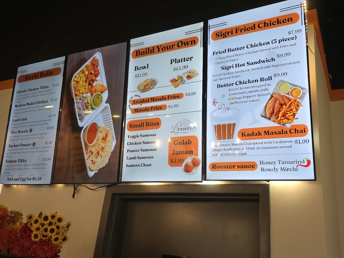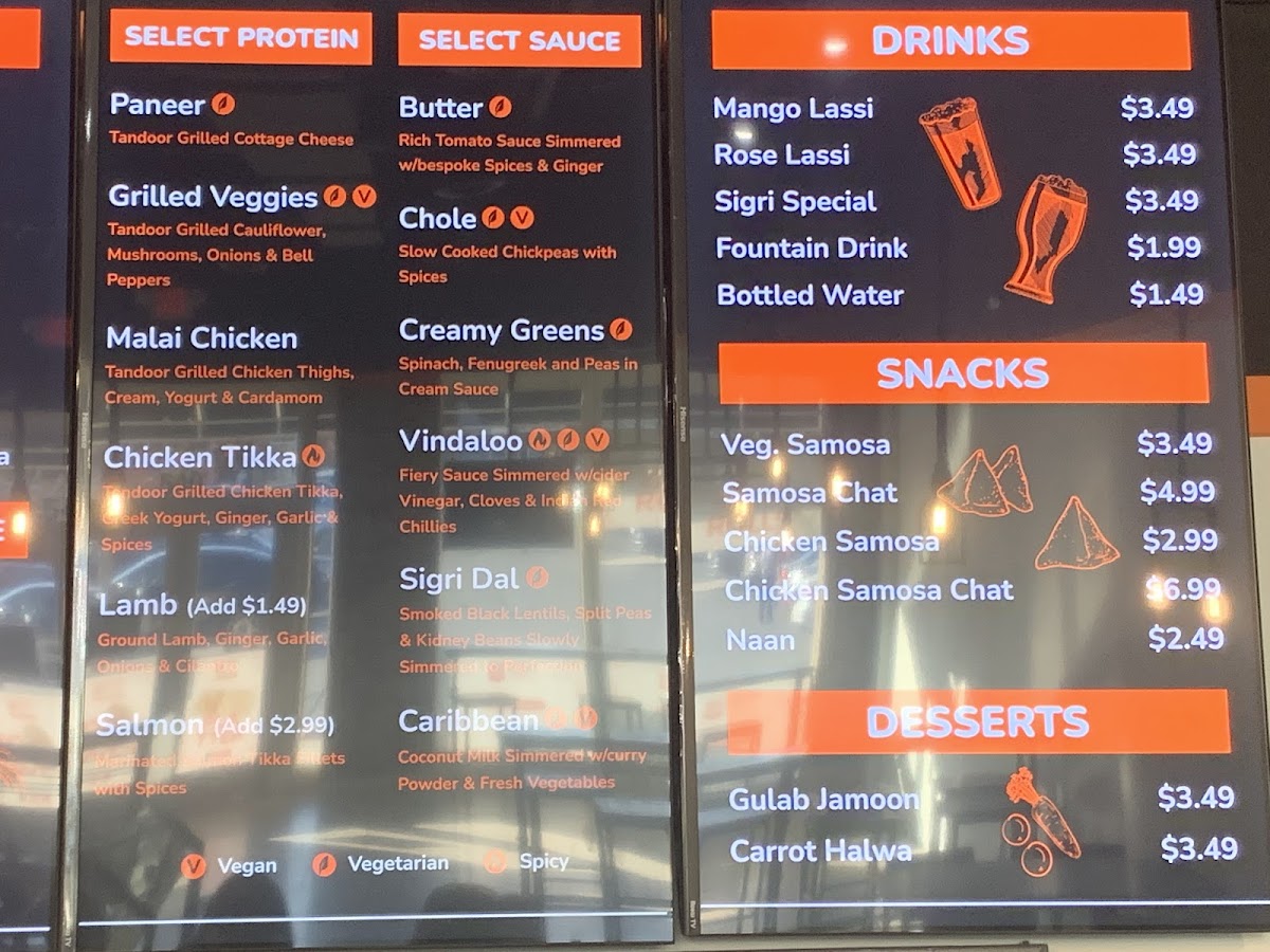 Choose from Butter Sauce, Vindaloo Sauce, Masala Queso, Caribbean Sauce, Spinach Sauce, Sigri Dal, or Chole for your extra.